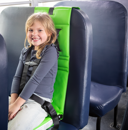 Attaches to any School Bus seat without requiring a seat belt